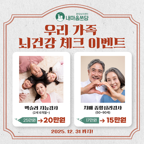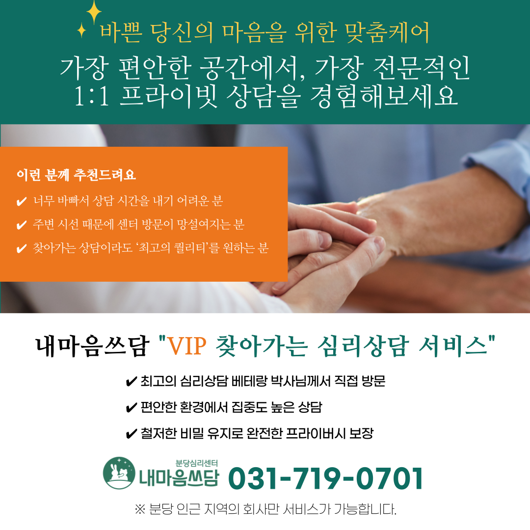사랑과 정성을 다하는 우리 가족 지킴이 편안하고 체계적인 분당심리센터 내마음쓰담 상담서비스